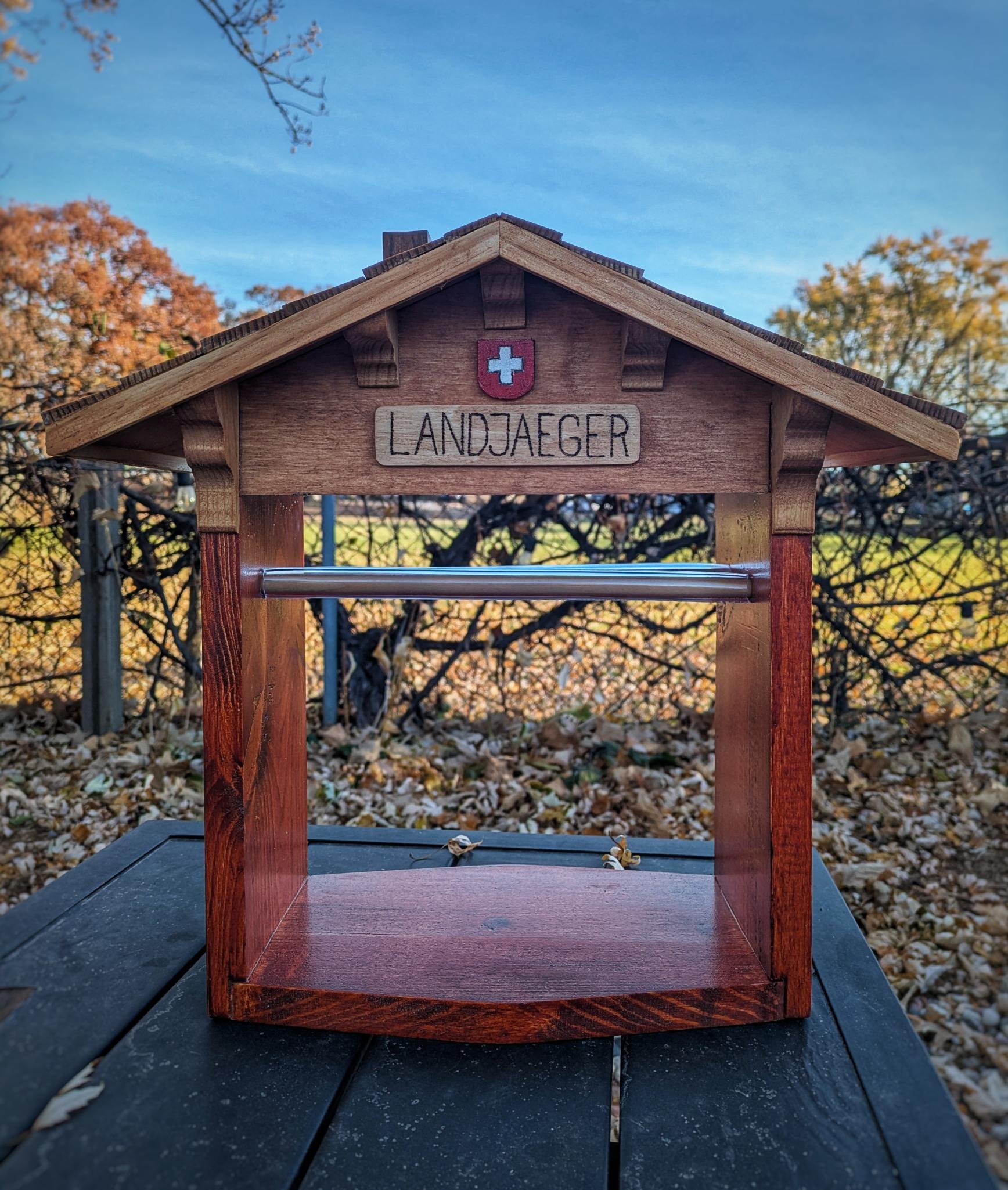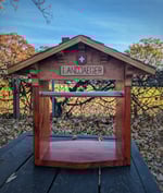 Own a brilliant piece of Wisconsin history with this handmade wooden display case. These are some of our most highly-decorative displays to date, and Heinz has gone above and beyond with brand new hand-crafted elements such as a balcony w/ planters, a door & two windows, and a proud Swiss crest atop it all!